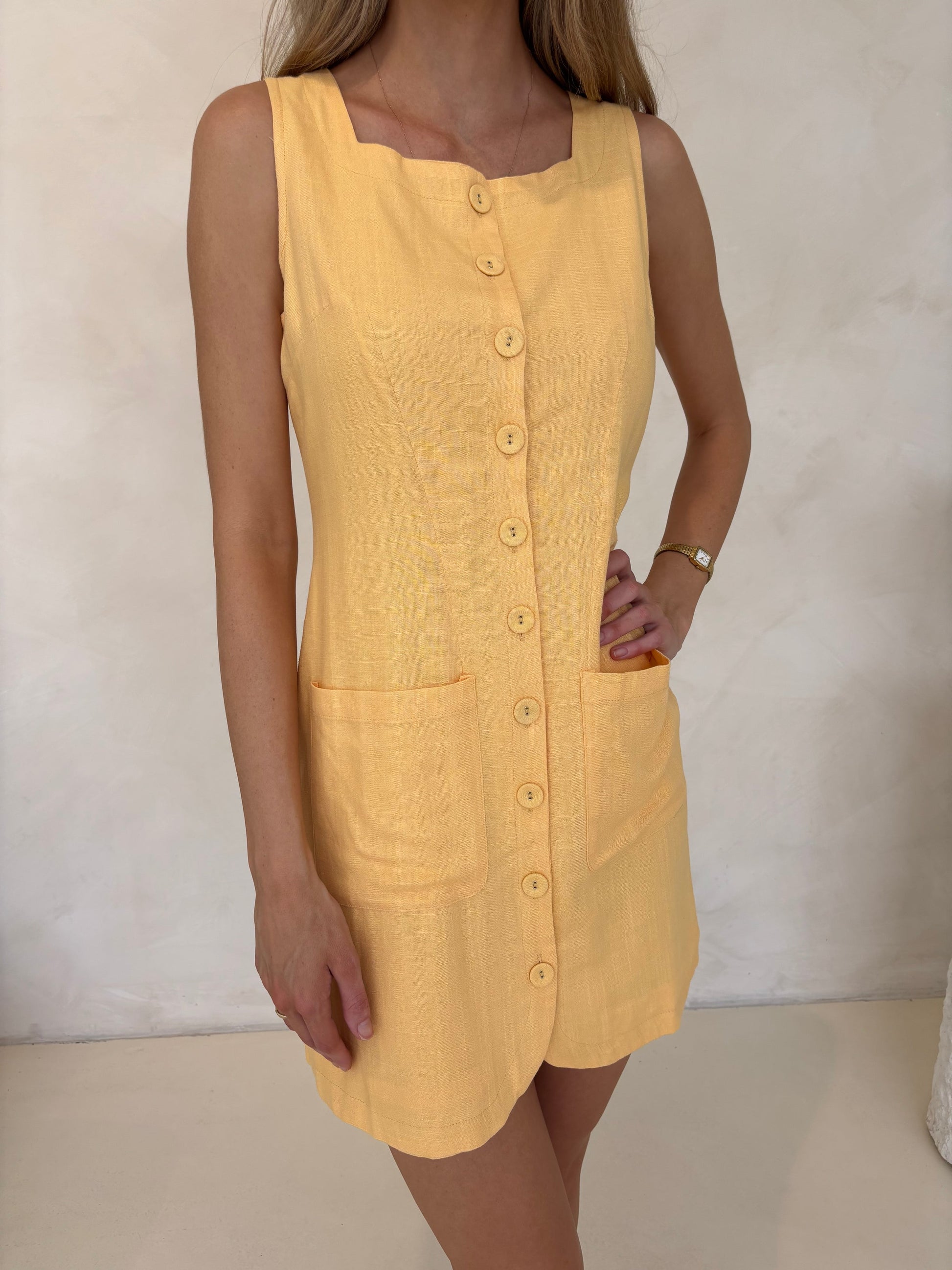 The Vienna Button Dress in Pastel Orange offers a perfect blend of style and practicality. Crafted from a linen-cotton blend, this dress provides a breathable and comfortable fit, ideal for warm days. It features adjustable straps on the back, allowing for a customizable fit, and front pockets for added convenience. Fully lined for a smooth finish, the Vienna Button Dress combines effortless style with everyday functionality. The natural hue and button-down design make it a versatile piece that can be dressed up or down for any occasion.